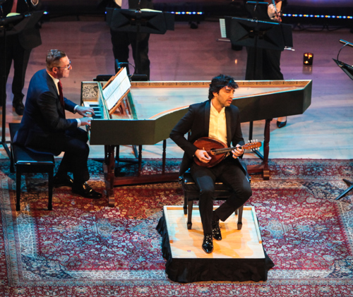Vivaldi took care to ensure that the soft grained sound of the lute was not swamped by the strings. In the fast outer movements, the tutti instruments frame passages for the soloist and mostly the lute (here the mandolin) is supported only by the continuo (bass instruments and harpsichord). The striking rhythms of the first movement are followed by one of his most exquisitely serene slow movements, and the concerto ends with a lively dance-like Allegro.