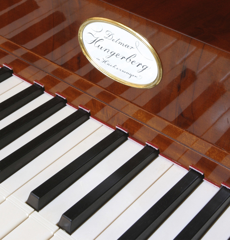 The fortepiano – the link between the harpsichord and the modern piano – is the instrument Mozart composed his works upon. The Brandenburg uses a copy built in Cologne, that was commissioned by two early, influential supporters of the Brandenburg – Dr John Holt and his wife Mary. It cost $120,000 and is played by Dyer for classical works.